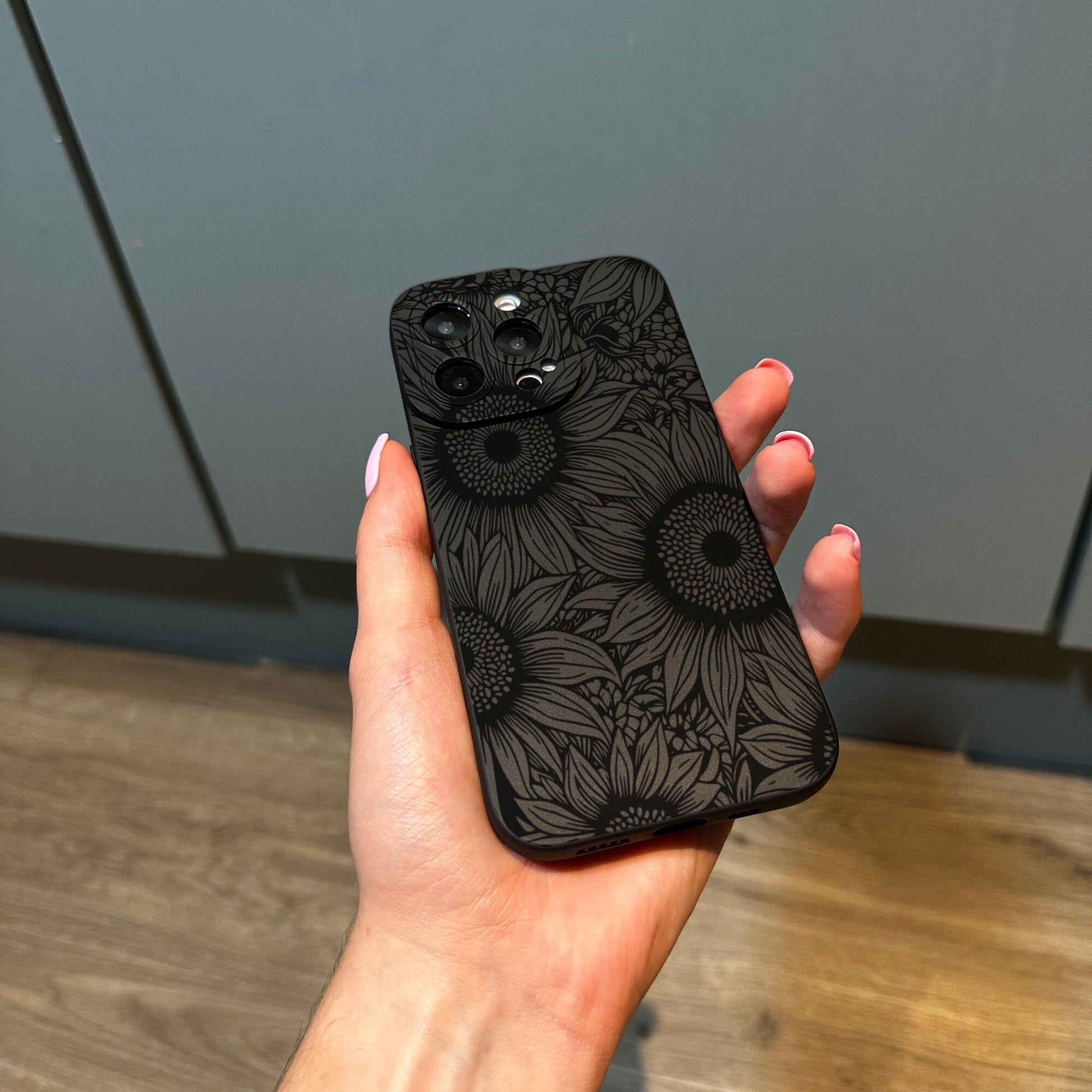 Sunflower Floral Black Phone Case for iPhone 17 16 15 14 13 12 11 11 Pro Max Mini 7 8 XR XS X Shockproof Phone Cover with Customised Name